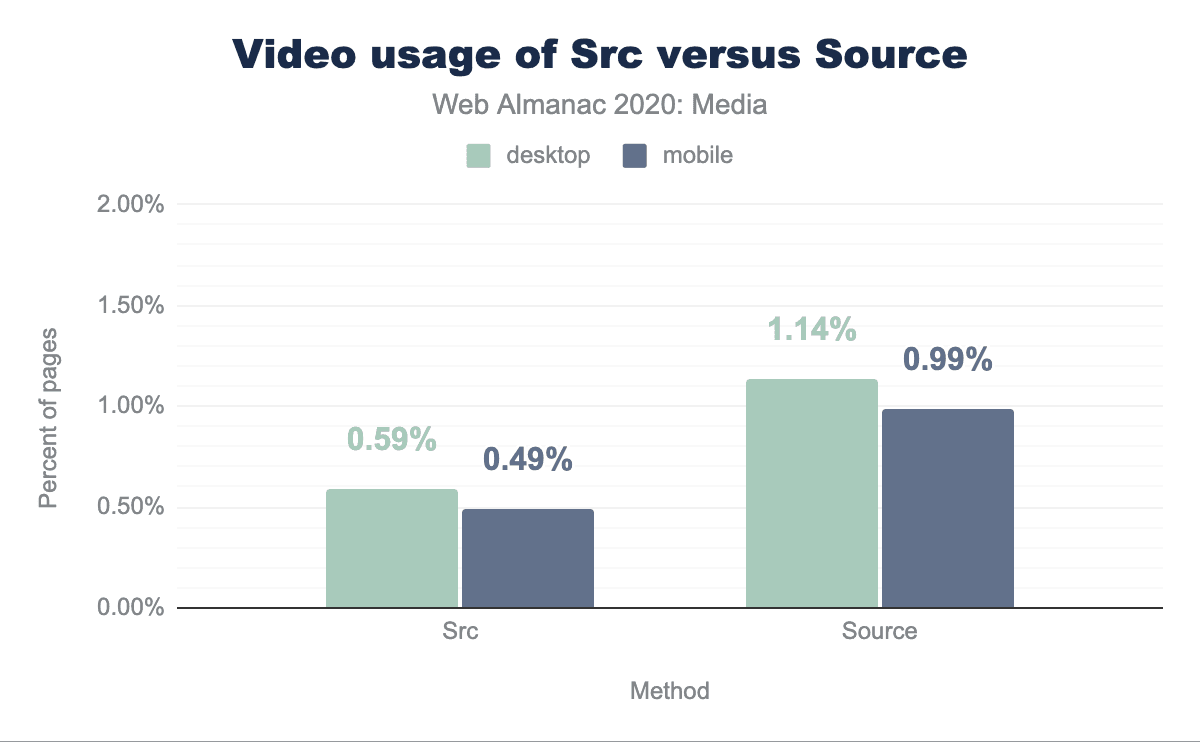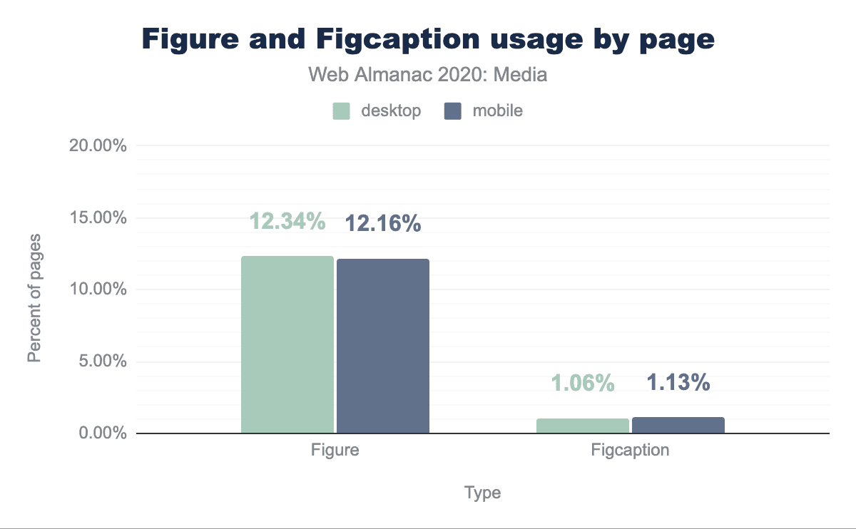 デスクトップとモバイルでも、約12%のページで<figure>要素が使用されていますが、約1%のページで<figcaption>を使用して説明文を追加していることがわかります。