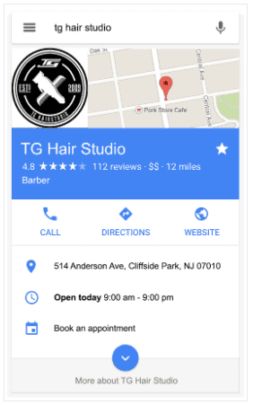 構造化データとリンクデータを組み合わせることで実現するもう1つの検索結果が、リッチリザルトです。これらの結果は、イベント、FAQ、ハウツー、求人情報、より一層などの形で、検索結果にリッチな機能を表示します。構造化データを実装してWebページをリッチリザルトの対象にすることで、クリック率を高めることができる。下の画像は、ヘアースタジオのビジネスの詳細を構造化データにすることで、検索エンジンがそのビジネスの情報を簡単に抽出して表示し、ハイライトしてSEOを最適化できることを示しています。