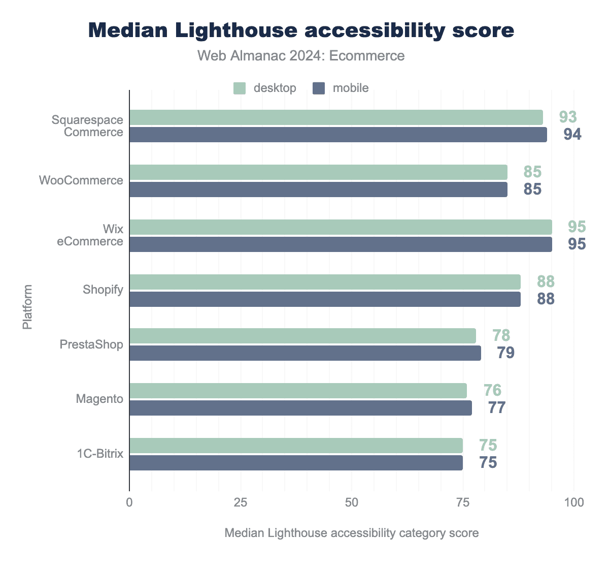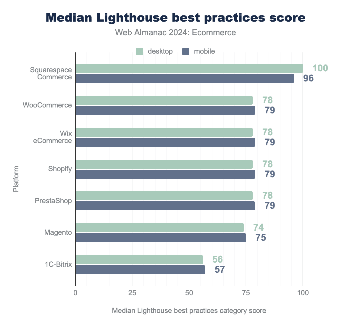 商用プラットフォームのWix、Squarespace、Shopifyは優れたパフォーマンスを発揮していますが、どのシステムも著しく悪い結果にはなっていません。